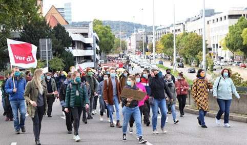 Sendikanın çağrısıyla başta Stuttgart olmak üzere Heilbronn, Karlsruhe, Mannheim ve Tettnang kentlerinde 8 bin kamu emekçisi (Hastane, kreş, gençlik evleri, temizlik, toplu taşıma alanları) iş bırakarak uyarı grevine katıldı.