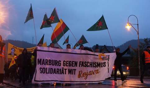 Aufgerufen hatte das Bündnis Kurdistan Soli Plenum mit 25 Organisationen, Gruppen, Initiativen und Parteien unter dem Motto: „Marburg gegen Faschismus – Solidarität mit Rojava“, diesem folgten mehr als 1000 Menschen trotz starkem Regen.